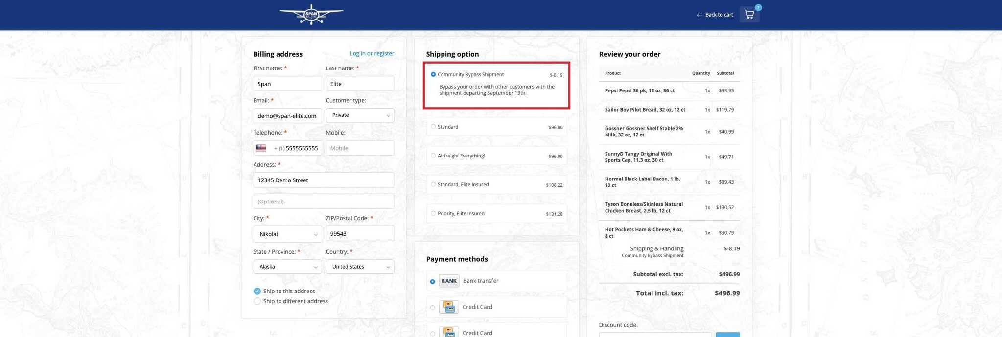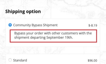 - Under shipping options, choose Community Bypass Shipment (if available in your community)