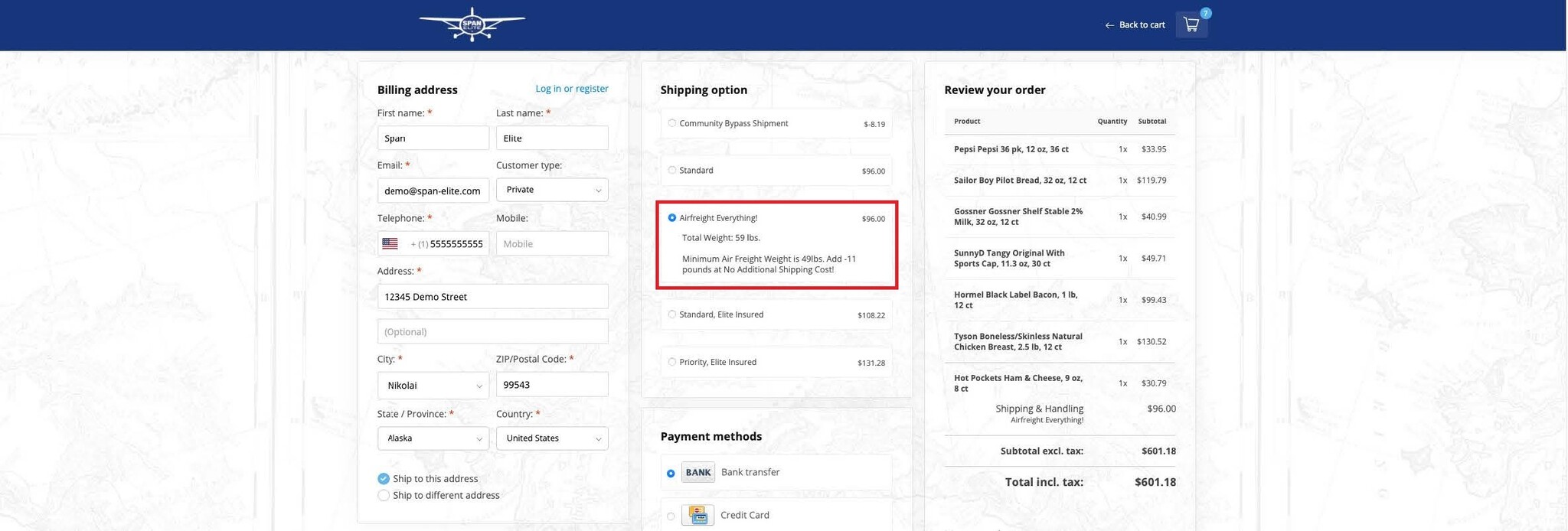 - Chill and frozen items: Bypass freight is already built into the price of the product.